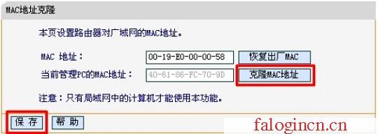 2、如果宽带运营商不支持MAC地址解绑,则可以使用迅捷(Fast)路由器上进行MAC地址克隆功能,来突破宽带运营商的上网封锁。